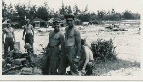From left: A Corpsman (unknown), David Dominques, (unknown).